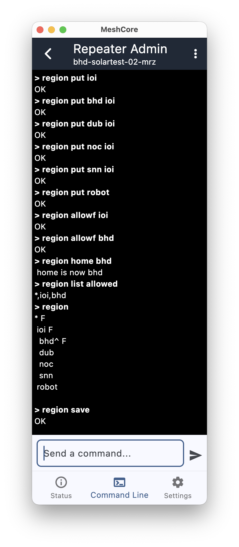 You can edit which regions are enabled (which the repeater will relay messages scoped for) in the meshcore UI much easier than you can in the CLI after you've made these changes here.